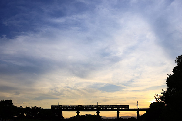 ●夕陽を浴びながら「第2波瀬川橋梁」を渡り、松阪駅に向かう「キハ11形」。