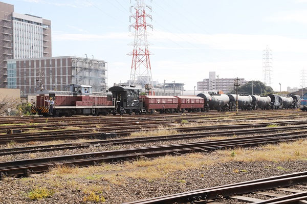 名古屋臨海鉄道とは名古屋港の東側の臨海工業地帯に貨物輸送を行なう、貨物専業の鉄道路線で、東海道本線笠寺より分岐し名古屋市南区の大同町付近にある東港駅を拠点に、東海市、知多市の臨海部へ路線を伸ばす総延長約17㎞の路線です。もともと国鉄名古屋港線(貨物線)と名鉄築港線から伸びる引込線で行っていた鉄道貨物輸送を一元化し国鉄や日本通運、名古屋港管理組合、名鉄、JXTGエネルギーが出資して1965(昭和40)年に設立されたものです。
