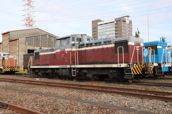 ▲東港駅の操車場で入換中の貨物列車。国鉄時代を彷彿とさせる国鉄色のDLに車掌車の付いた編成だが、これはイベント時のデモ編成。