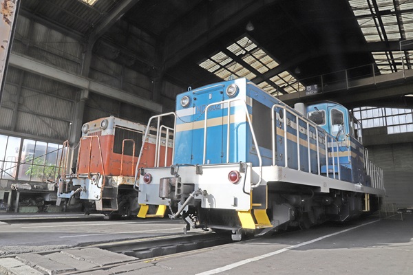 ▲機関庫で休む右からND602とND5515。ND602はND552と同じセンターキャブ型で外観も似ているが2010年に日本車両で製造された次期主力機。(写真はいずれも見学ツアー時のもの)。