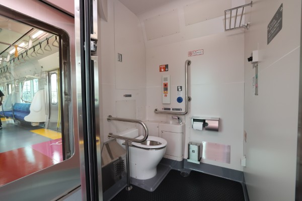 ▲クモハE131形に設置されている、身障者対応のトイレ。