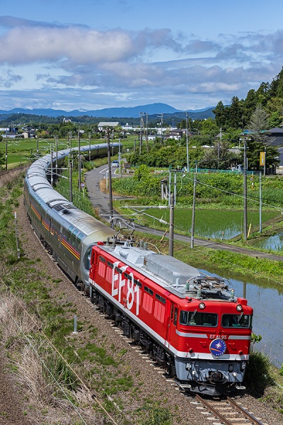 こちらは先日運転された「カシオペア紀行」仙台行き。EF81 95の牽引となった。 ‘25.6.15 東北本線 槻木〜岩沼 P:谷川貴則 (鉄道投稿情報局より)