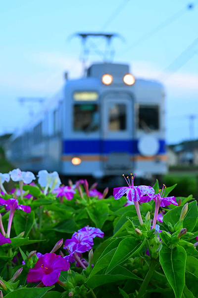 ●線路沿いのオシロイバナが咲き始め、夕暮れ時の楽しみが増えました。