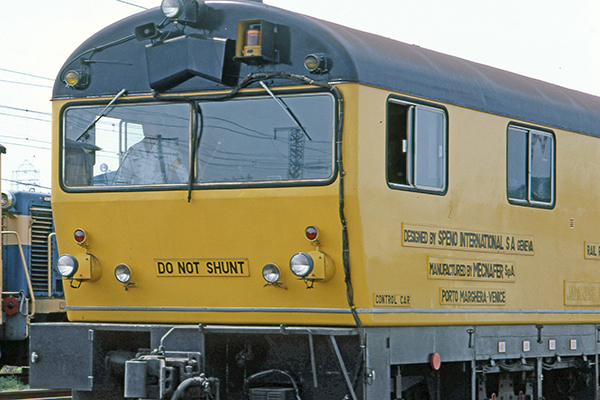 これは現在はJR東海系の保線企業となった日本機械保線株式会社が、1984年に導入したスペノ製(スイス)のレール削正車。大きなドーム状の屋根や英語の標記が異国情緒を醸し出しています。