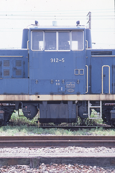 912-5号機のキャブ側面を見る。DD13 54からの改造。写真の側面とは逆のキャブ窓はATC装置搭載のため中央が埋められている。ちなみに区名札差しが中央から向かって左下に代わっているのは、いくつかの個体で見られた仕様である。912-2・4は国鉄時代に東北新幹線の仙台基地に転属している。