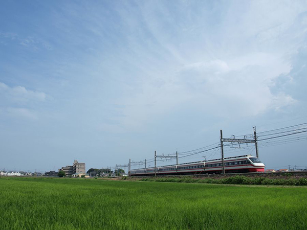 ●夏の陽射しを浴びる田園地帯を特急「りょうもう」が快走していきました。