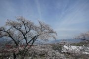 四月初めの車窓。南アルプスの山々が雪を冠っている。