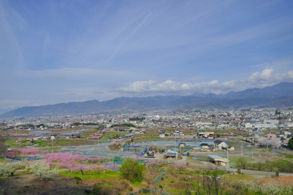 春の甲府盆地 甲州市・山梨市の街並み。手前に咲いているのは桃の花だろうか。 【この画像の記事に戻る】 旅の途中の「車窓」に注目!都心から特急でわずか1時間半 絶対見ておきたい中央本線の列車の絶景車窓! 前の画像 次の画像