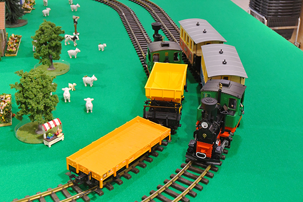 会場入ってすぐにはLGBのGゲージがお出迎えしてくれました。Gゲージとは線路幅が45mmの鉄道模型のことで、縮尺も1:22.5~1:24と、鉄道模型の中では特に大型のものといえます。会場ではこの大きなGゲージ鉄道模型を無料で体験運転することが可能でした。会場では子供たちが楽しそうに遊んでいるのも印象的でした。