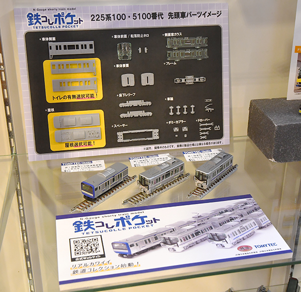 KATOからも先日発表されたばかりの小田急ロマンスカーNSE 3100形更新車の展示がなされ、最大の特徴である字幕式の前面愛称表示器や、冷房化がなされた屋根廻りのディテールも見ることができました。また、あわせて発売されるバリエーション品である「ゆめ70」仕様では、オリジナルとは異なる両先頭車のソファ型座席が設置された内装表現の展示もされていました。