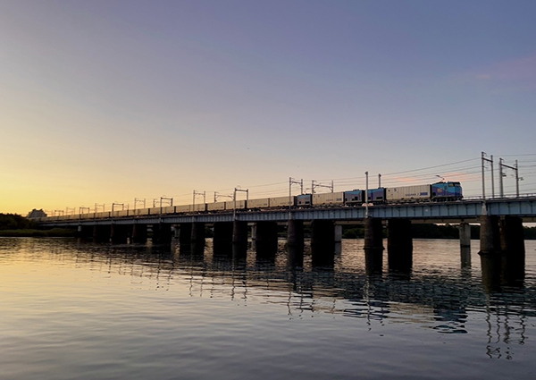 ●土木遺産に認定されている国内唯一の複線下路ダブルワーレントラス橋と令和に帰って来た「スーパーくろしお色」のコラボレーション!