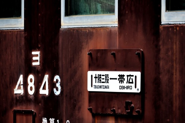静態保存された車掌車に張られた真新しい行先表示板。少しずつですが手入れがされているな、と感じました。