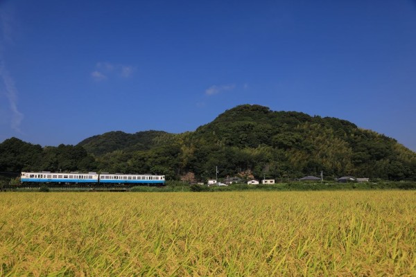 盛夏の青空の下、早くも黄金の稲田が広がる中を、四国色の国鉄型気動車が走り抜けた。