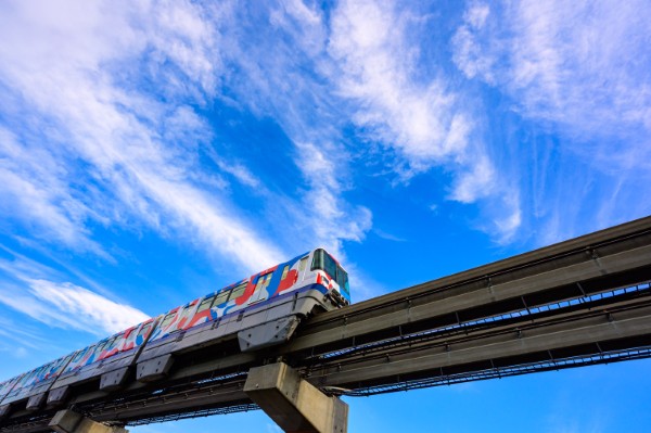 ●連日の猛暑、熱風が吹き抜ける高架を行くミャクミャクカラー。万博閉幕まで2ヶ月強!