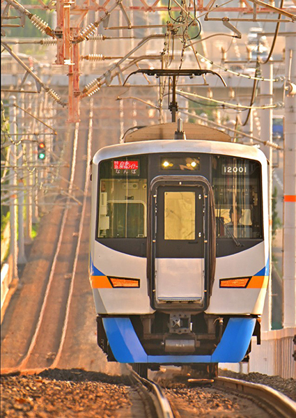 ●暑い夏日の夕刻、銀の「泉北ライナー」が勾配を駆け上がってきた。