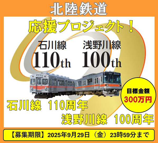 周年に際して、北陸鉄道の応援プロジェクトクラウドファンディングを実施中。概要や返礼品の詳細などは下記リンクより。