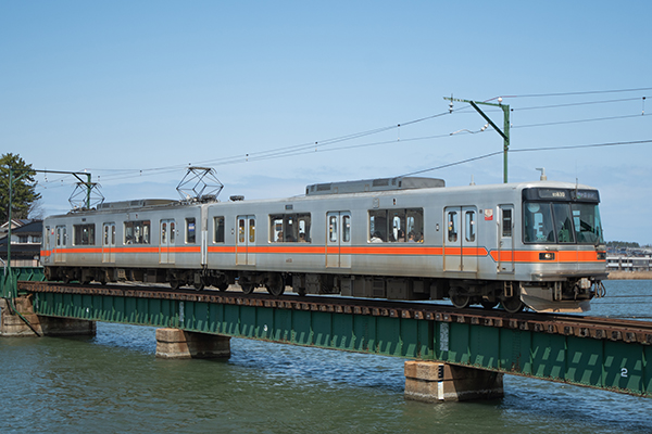 浅野川線はJR金沢駅に直結している北鉄金沢駅から、内灘駅までを結ぶ全長6.8kmの路線です。住宅街を縫うように走り、海岸に近い内灘駅に近づくにつれ、徐々に海辺の街らしい雰囲気になっていきます。特に蚊爪駅〜粟ヶ崎駅間の大野川を渡る橋は同路線のハイライトでもあると言え、橋を渡る車両をスッキリ見ることができます(立ち位置は極端に狭いので自動車や歩行者の往来に注意)。