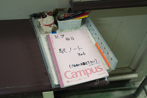無人駅となって久しいが、今も駅ノートがあり、自由に書くことができる。