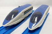 nayu500_03 1996年発売時仕様の500系。実車とはかけ離れた塗装だが、ちゃんと500系に見えるあたりにプラレールらしさを感じ取れる。 【この画像の記事に戻る】 過渡期仕様のプラレール!?リニューアル前後の狭間にあった超リアル塗装の「500系新幹線」とは? 前の画像 次の画像