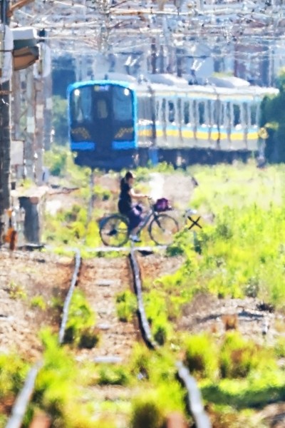 ●まだまだ許してもらえそうもない残暑の中、ゆらゆらと電車がやって来ます。
