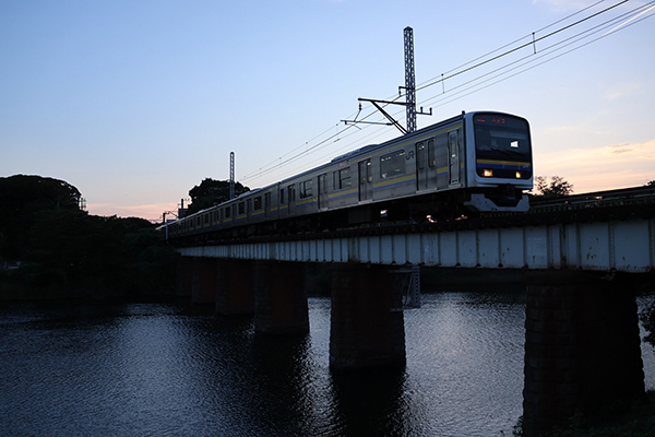 ●日没を迎え徐々に薄暗くなっている中、209系が通過して行きました。