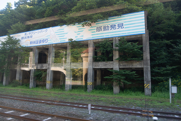 釜石鉱山のホッパーの遺構を横目に陸中大橋駅を通過。ここから仙人峠を越えてゆく。