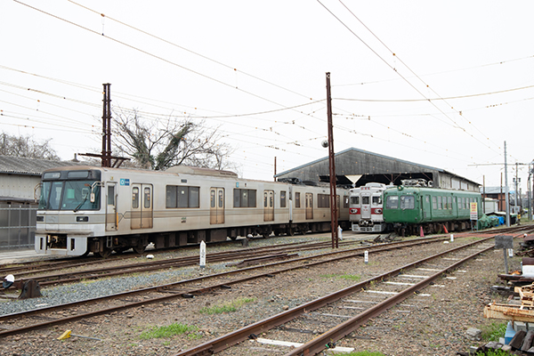 DSC_0928 北熊本駅の車庫。03形の他に元都営の6000形(写真中央)、2016年に現役引退した「青ガエル」こと元東急5000系の5000形(写真右)が見られた。 【この画像の記事に戻る】 九州で活躍する東京メトロの車両!?元日比谷線と元銀座線にも会える「熊本電鉄」その魅力とは 前の画像
