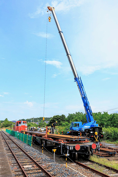 ●東京臨海高速鉄道71-000形が東海道本線国府津駅まで試運転を行いました。馬入橋鉄橋ではブルーの車体に合わせるように青いウィンドサーフィンが出迎えていました。
