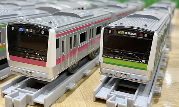 nayu06 京葉線と横浜線の並び。運用線区ごとに異なる「各駅停車」の表示をしっかり再現しているのが素晴らしい。 【この画像の記事に戻る】 意外と結構古い金型を使ってる?実はレア物も!知られざるプラレールE233系のバリエーションに迫る! 前の画像 次の画像