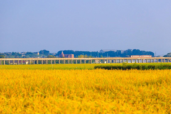 黄金色の田んぼ、タラコ色の気動車〔今日の一枚・2025年9月9日セレクト〕