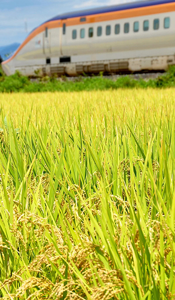 収穫間近の稲とE8系「つばさ」。