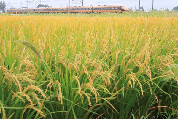 ●黄金色の稲穂と、日光詣の「スペーシア」。