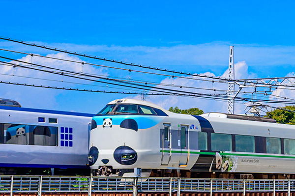 ●パンダがいなくなった白浜に向かう「パンダくろしお」。すれ違う「はるか」の窓にも子パンダ…