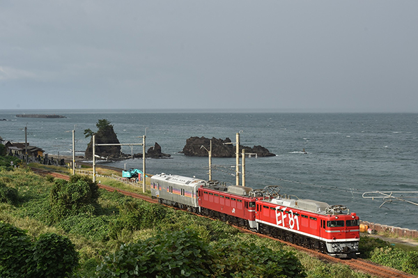 数々の列車を牽引してきたEF81 95号機が後輩である139号機と初めて日本海側走るカヤ27 501を引き連れて最後の花道を進む。