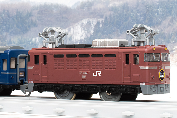 もちろんリアルクラスであることから、各種標記類もバッチリ。機関車のナンバーはEF81 107とされ、このナンバーは「日本海」のみならず、「つるぎ」やかつて多く存在したジョイフルトレインの牽引、さらには「オリエント・エクスプレス‘88」の牽引実績もあるなど、特筆すべき活躍が多いにも注目です。