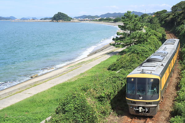 ●長門の青い海を横目にキヤ検が駆け抜けます。