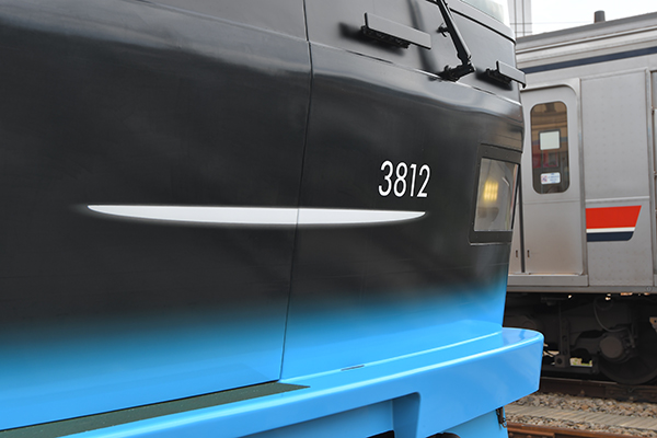 DSC_1653 車両中央の微笑んでいるようなデザイン意匠。 【この画像の記事に戻る】 グラデーションカラーに装いを一新!東急3000系リニューアル車の全貌がついにお披露目 既存車も順次施工 前の画像 次の画像