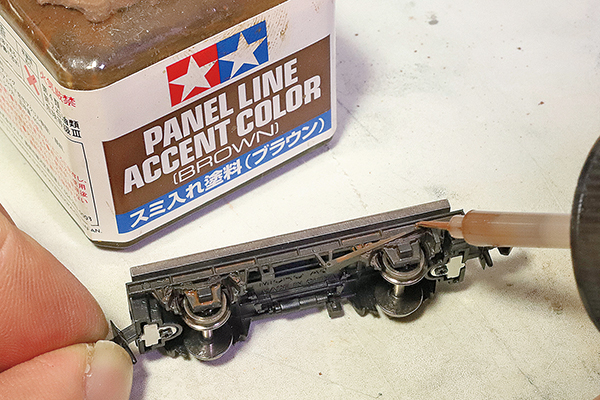 足廻りはタミヤのスミ入れ塗料(ブラウン)で色差しをして、くすんだ足廻りとしてみた。