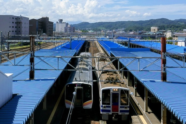 東京から新幹線で1時間半弱。鈍行で行けば、旅人泣かせの屈指の乗りとおしの難所である上越国境を越えて4時間。列車は関東を抜けて雪国へと進み、越後湯沢駅へと到着します。新潟に行くなら弥彦に行ってお参りするもよし、長岡で歴史に触れるもよし、新津や直江津の鉄道博物館に遊びに行くもよしと、見どころがたくさんですが、のんびり列車旅を楽しむとすれば、信越本線から見る日本海の車窓は外せないでしょう。となれば、ここから先は北越急行ほくほく線に乗り換えて犀潟・直江津方面を目指します。