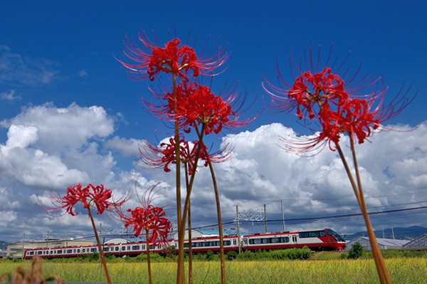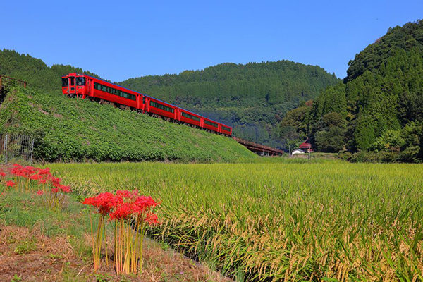 収穫の秋、彼岸花と同色の特急「ゆふ」が映える!〔今日の一枚・2025年10月2日セレクト〕