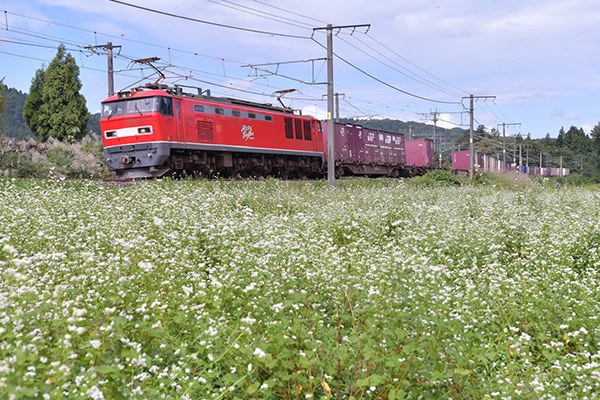 ●ソバの花を横目にレッドサンダーが駆け抜ける。
