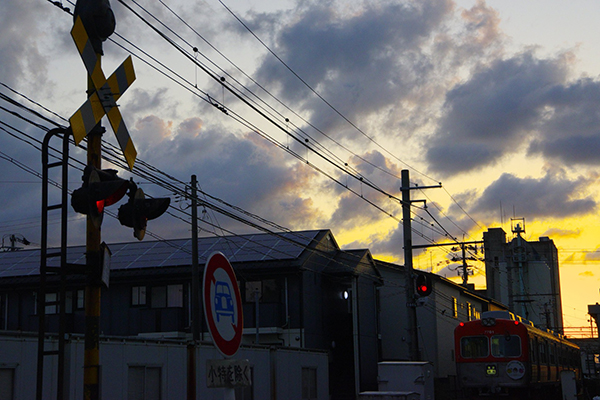 ●電鈴踏切の音が心地よく響く金沢市内。日没時刻を過ぎ、少しづつ消えてゆく夕焼け色を追いかけていった。