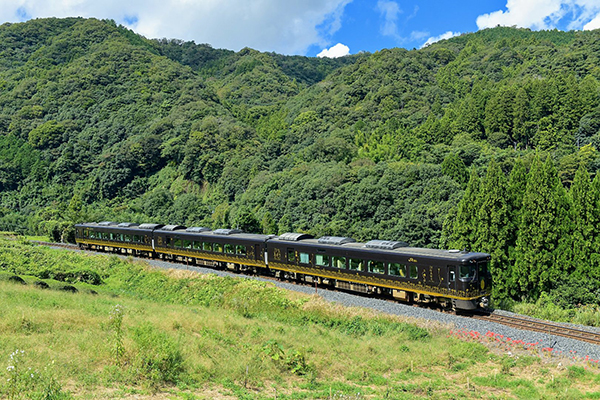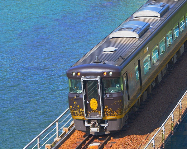 ●観光列車「はなあかり」、山陰の海を眺望しながら走りました。キハ181系「いそかぜ」を思い起こすお顔立ちですね。