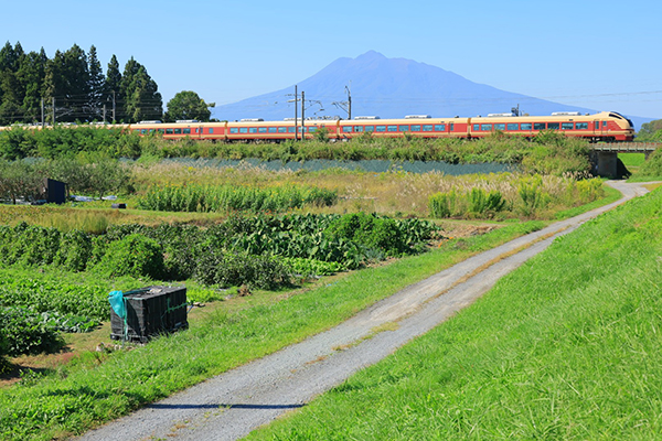 ●座席夜行ツアーとして運行された列車が岩木山を背景に駆け抜けました。終着の青森まであと少し。