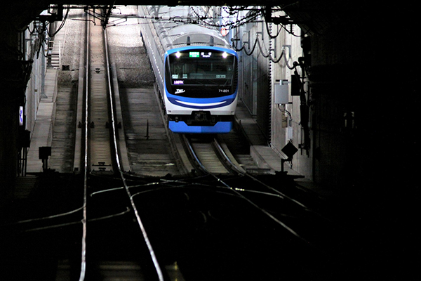 微笑みをたたえたニューカマーが、地下ホームへ滑り込む。