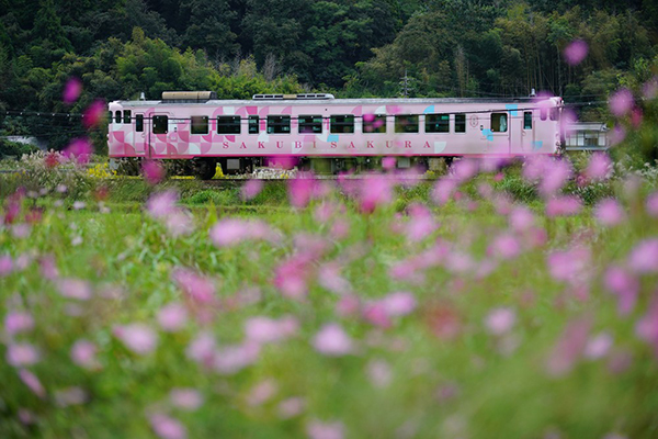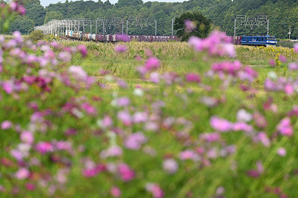●コスモスに彩られたモノサクを鹿島貨物が駆け抜けていきます。