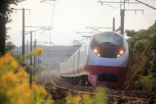 ●田園地帯を駆け抜け、大阪難波駅に向かう「ひのとり」。