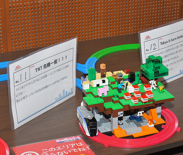 DSC_3306 『マインクラフト』的なマップをブロックで表現した作品。地上と地下の二層構造になっており、見る人を楽しませる芸の細かさが窺える。 【この画像の記事に戻る】 個性的な作品展示も開催!イベントで見られた「大人の」鉄道系おもちゃファンたちの知られざる世界とは! 前の画像 次の画像