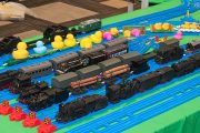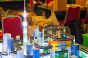 DSC_3502 会場内レイアウトの全景。全て有志にたちによりセクションごとにレイアウトが組まれている。 【この画像の記事に戻る】 個性的な作品展示も開催!イベントで見られた「大人の」鉄道系おもちゃファンたちの知られざる世界とは! 次の画像
