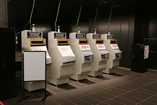 会期中はチャージ等で利用した方も多いのでは?ズラリと並んだ乗り越し精算機にカバーがかけられていた。